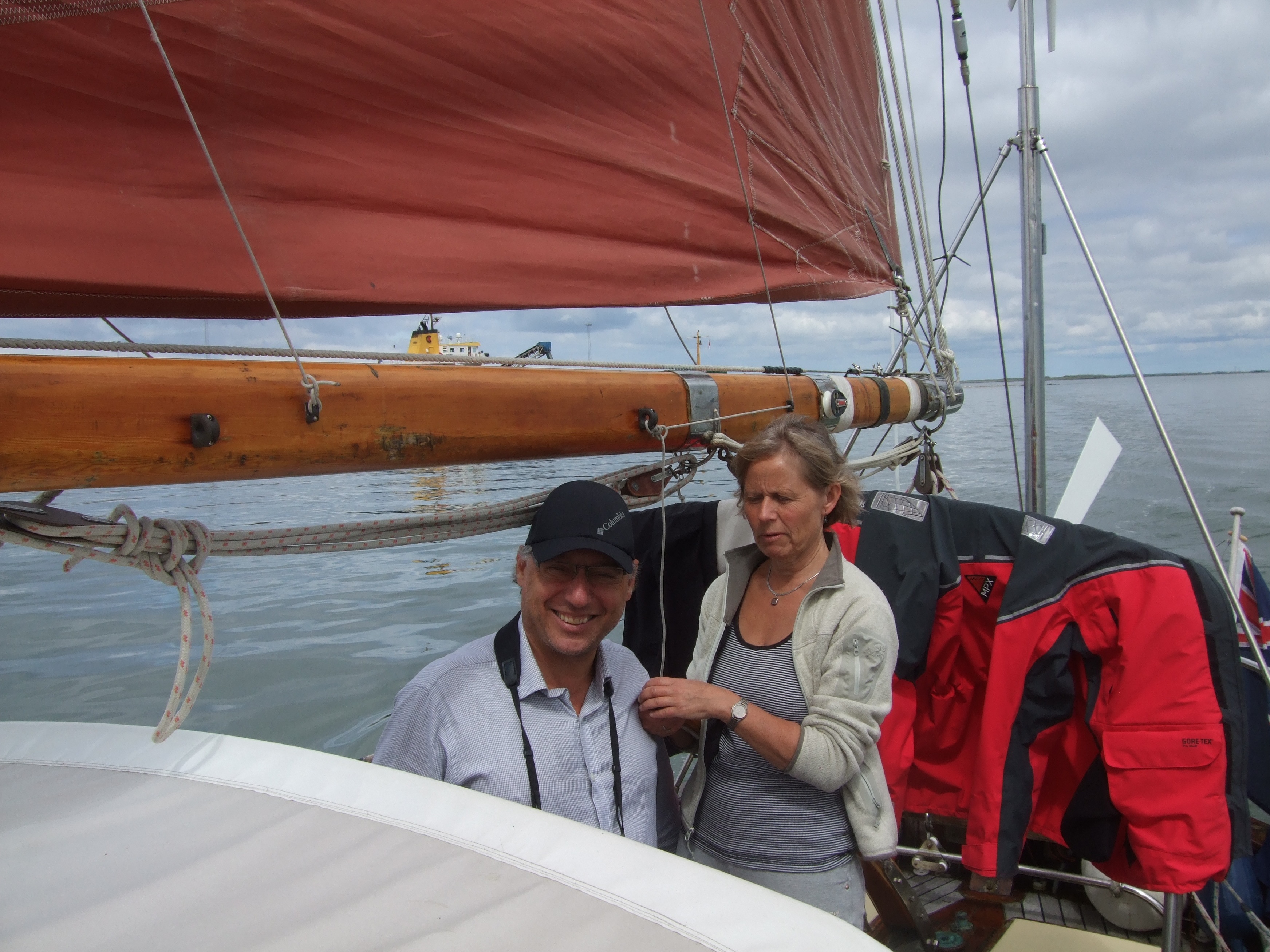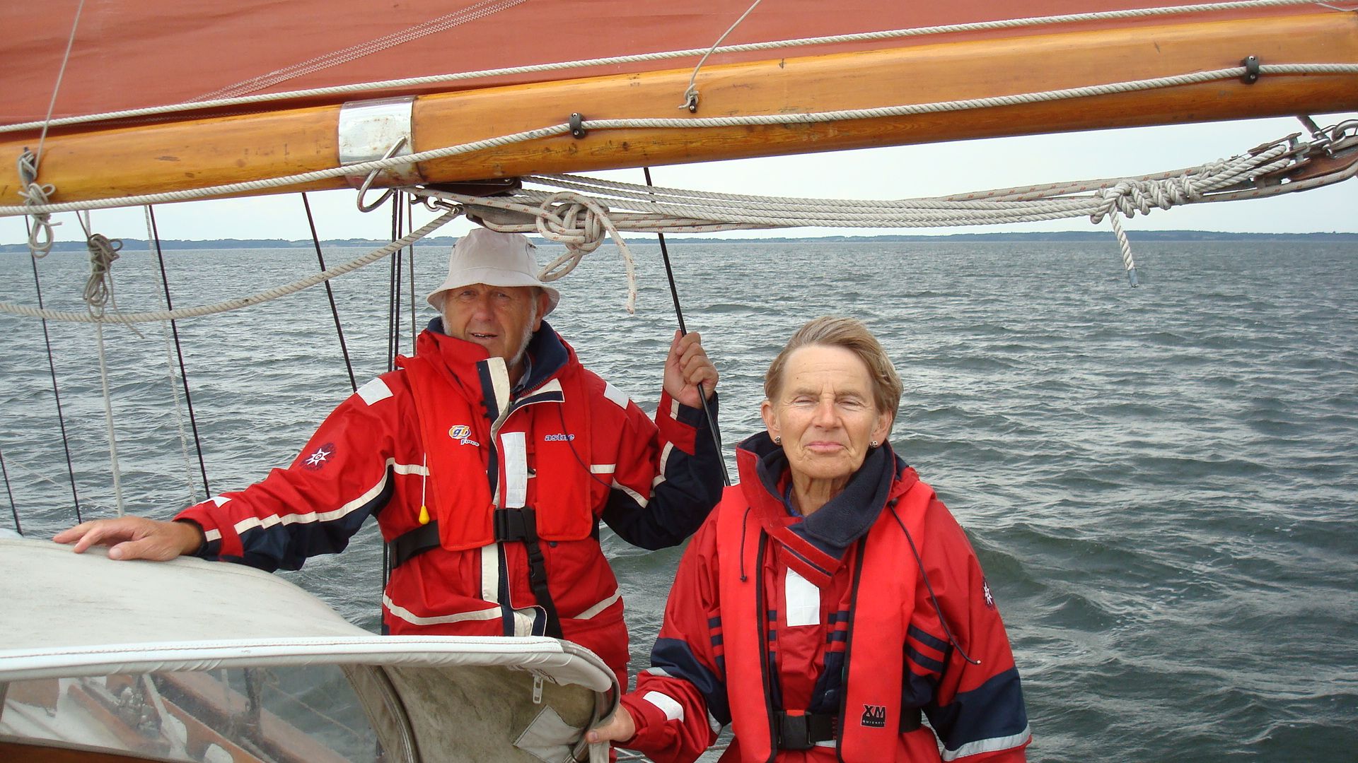 Rona and David Gundry on our ‘maiden’ sail from Plymouth to Dartmouth, December 2003.
