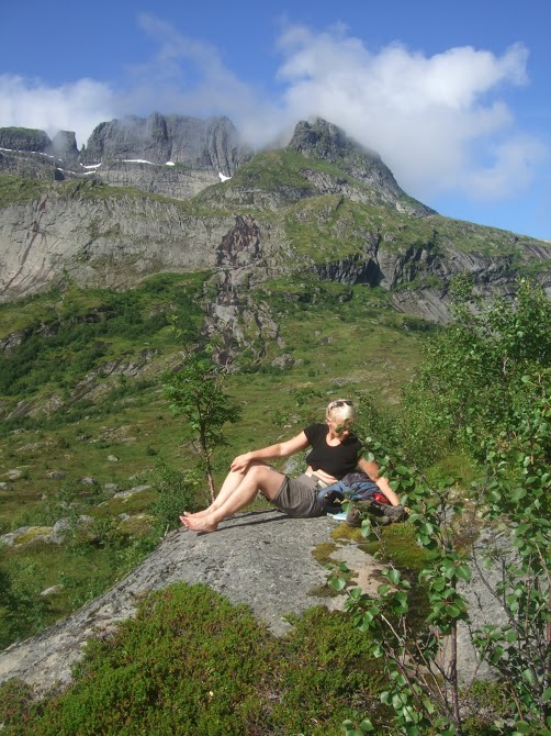 (1) John climbing, Lofotens, 2010. (2) Mette with Trollhatten behind, May 2011