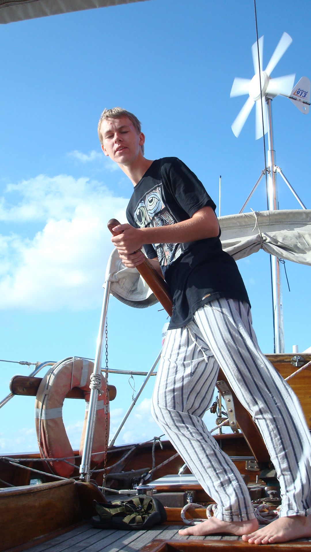 Doug, sailing with JB in Hardangerfjord, 2007 (a rather wet day!)