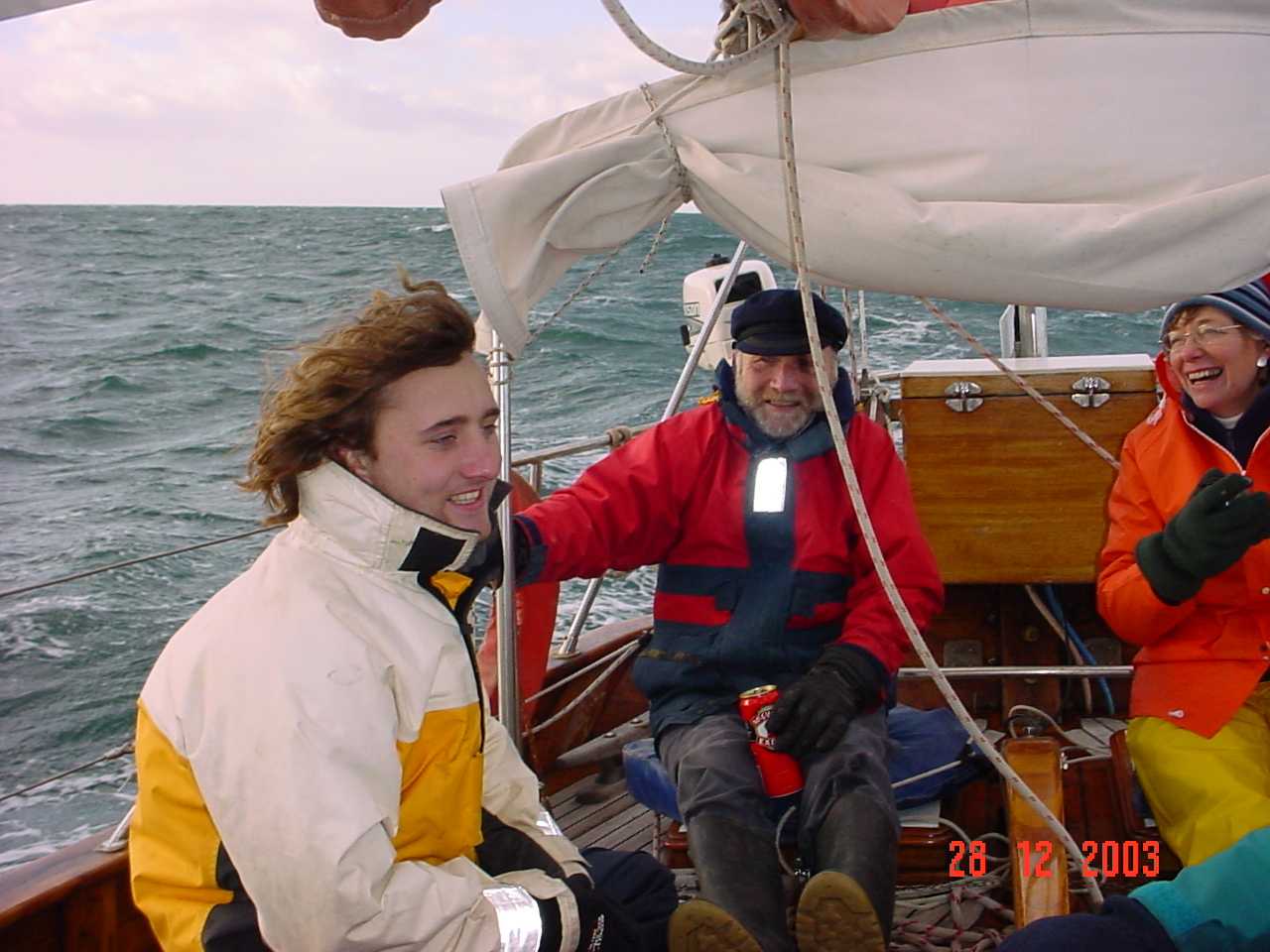 Peter and Richard Gregson (Wooden Ships) on our maiden sail to Dartmouth, December 2003.
