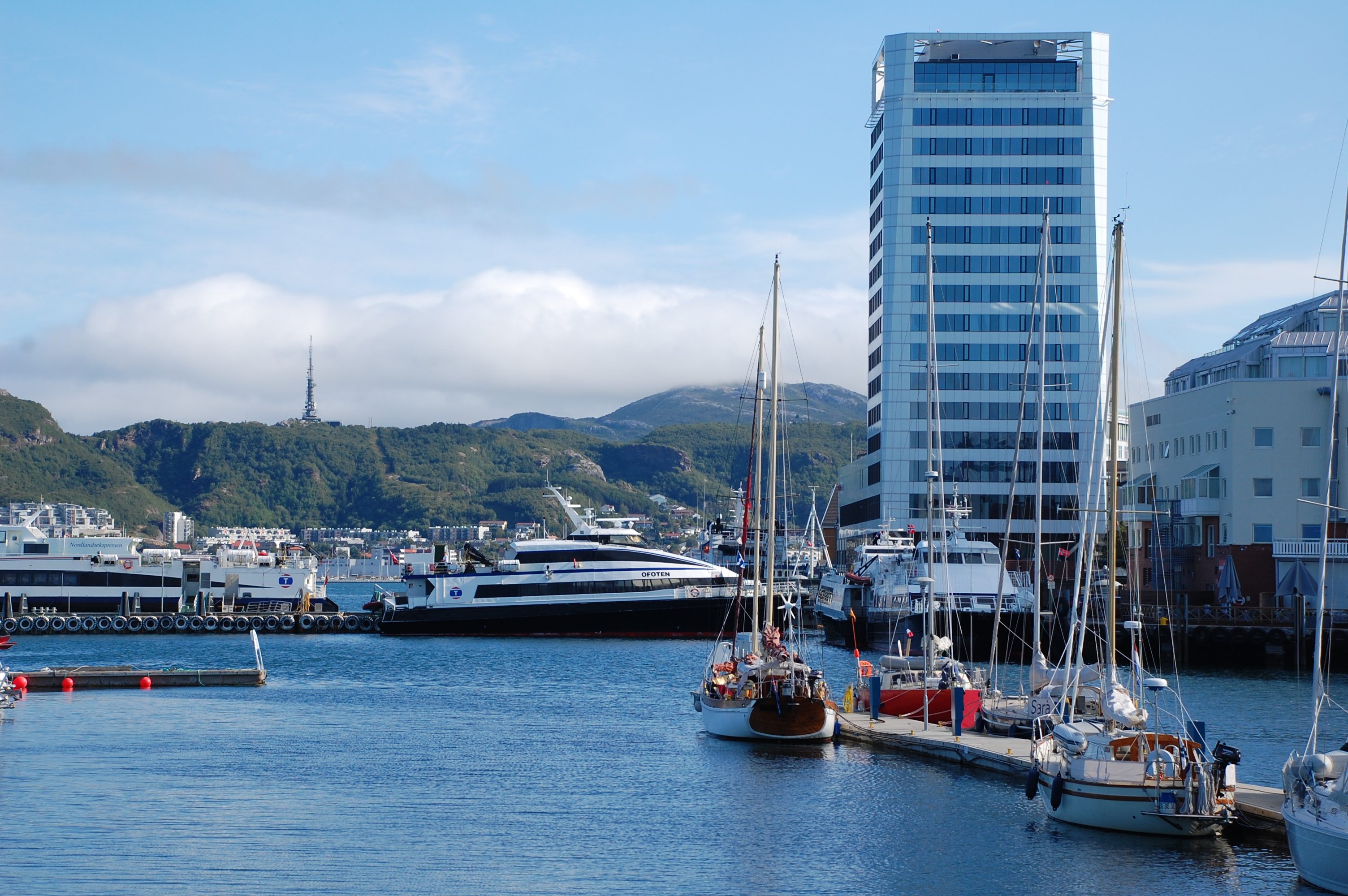 David left early next morning to catch the bus to the airport, and the crew were all sad to say farewell. We had some more sleep before going to pay the extortionate harbour fees, and buy the very costly card for the less than adequate facilities! Bergen is decidedly inefficient and overpriced compared with everywhere else we have been now and previously! But it was a very nice morning, and we did the shopping, got more charts, and visited NILF offices (fruitlessly as it turned out: john was supposed to pick up, sign and post a publishing contract there but the post failed us). We also got expensive fresh fruit at the extravagant ‘fish market’, which is a real tourist rip-off.