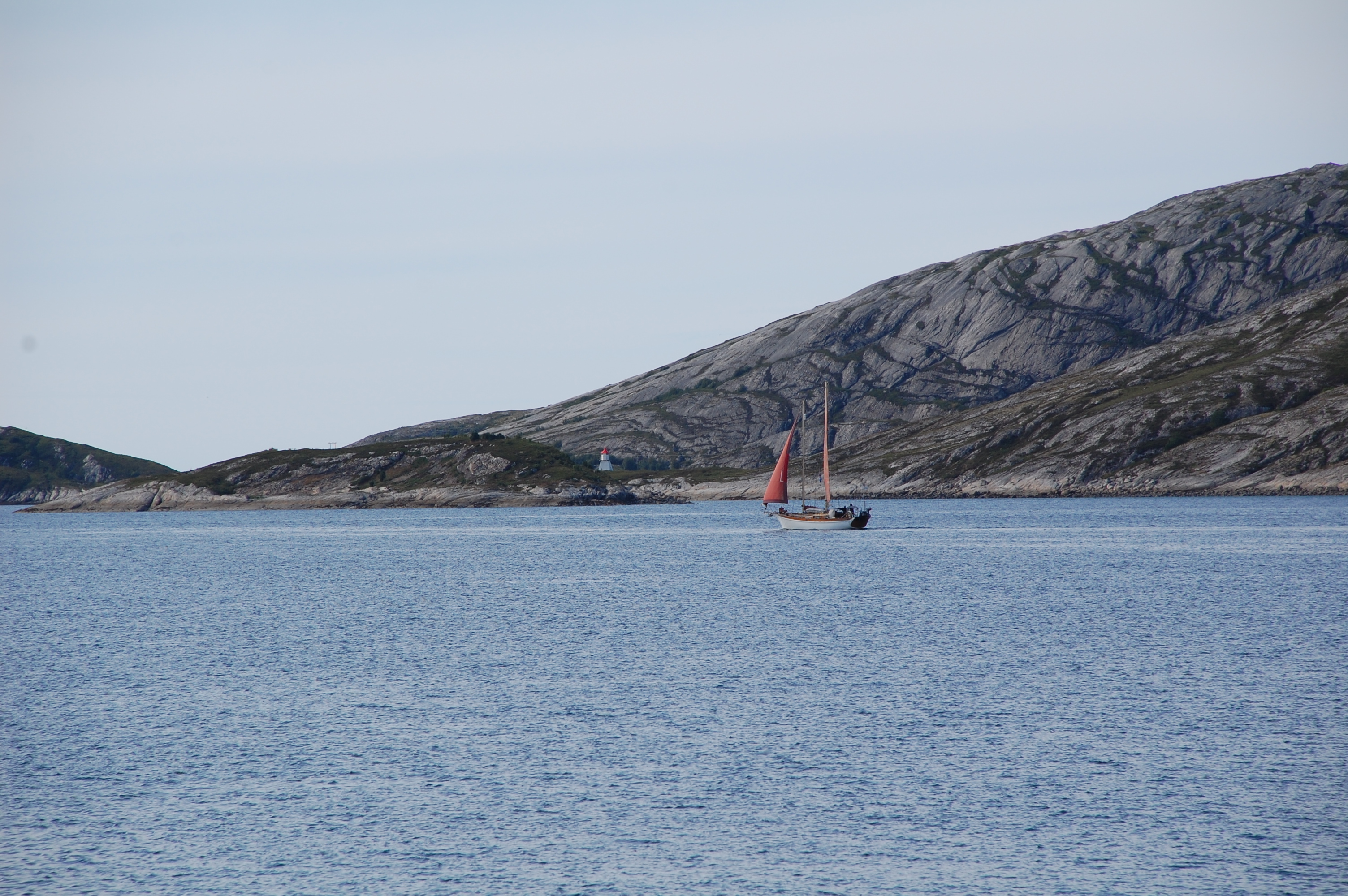 We barbecued 2 of them the same evening and froze the rest which had been filleted and frozen (the 11th). Actually, we still have about 2 to eat. On the 10th, we were willing to sail for Sandnessjoen but we took the wise decision to stop in Nesna, expecting to have more wind the next day and this is exactly what happened. We left Nesna quite early expecting to reach Bronnoysund before the night; which we reached after a long 10 hours sailing. We had some really nice moments of speed sailing at 8 knots but also a few parts with little wind. This is really part of the challenge and somehow the interesting reality of sailing in this part of the world: so many local phenomenons interacting and making it difficult to predict where and when the wind will coming from.  On the way we saw the 7 sisters and were sailing next to Vega for at least 4 hours. Today, 12th august, we are planning to sail to Leka.