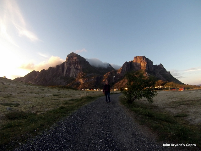 Monday Hot humid day. David and Gill go walking to Tjeldbergtinden. John gets the bike out. D&G enjoy great views and can see Aldarion from the top at 367 metres. Bus back to Kabelvagn and celebrate the climb with beers and shrimp sandwiches at the excellent pub sitting in the sun. Find the shortcut this time and enjoy evening sun and John’s marinated roast beef.