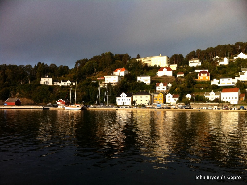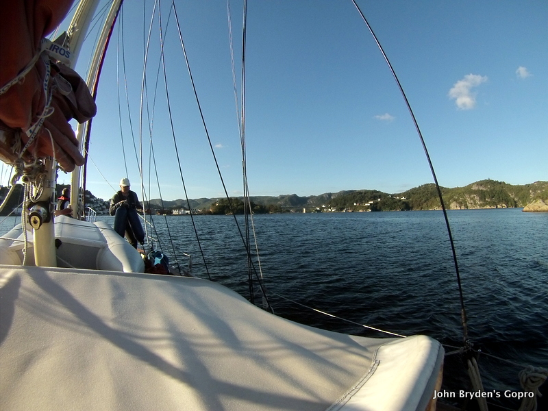 The 26th was another perfect morning, and we caught three nice fish on the way out of the anchorage, which we later enjoyed for dinner. We got sailing around midday after a windless morning heading through the narrow fjords towards Bergen. Then a good sail down to Bergen with a favourable tide. We arrived around 1830 and had a good evening together.