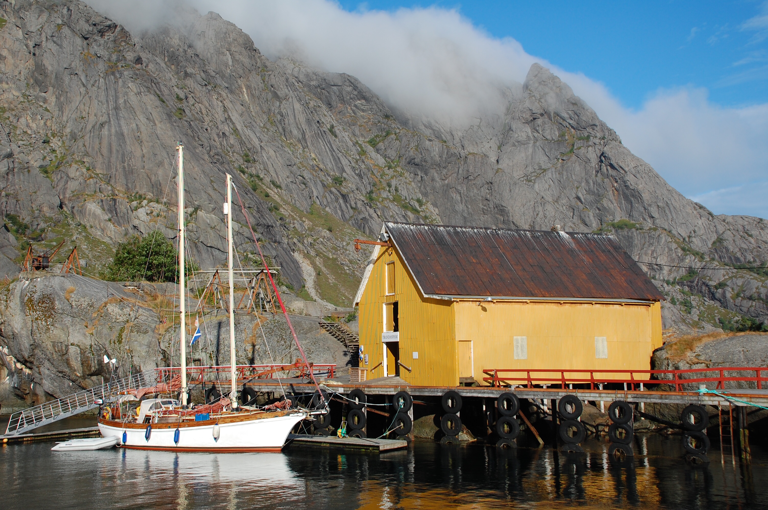 Safely tucked into Nusfjord by the cod liver oil factory.