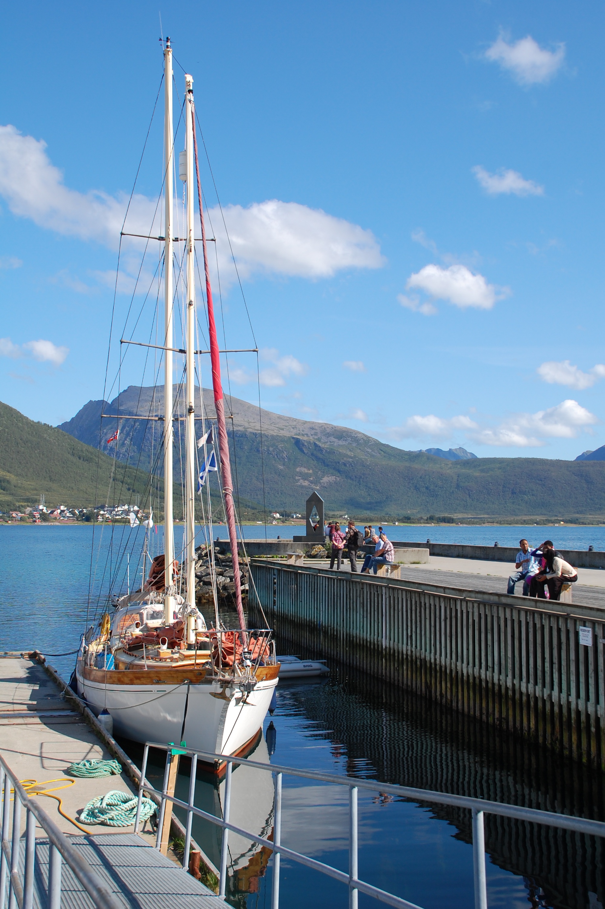 Tuesday We like the new sleeping arrangements on Aldarion….. Leave for Finnsnes at 12:30 in fine sunshine and light winds and are surprised that tides do not seem to be in our favour after all. The sail takes longer than expected and the marina has no space on visitors’ pontoon so we squeeze into a finger berth and find ourselves locked out of the marina facilities by padlocked gate.